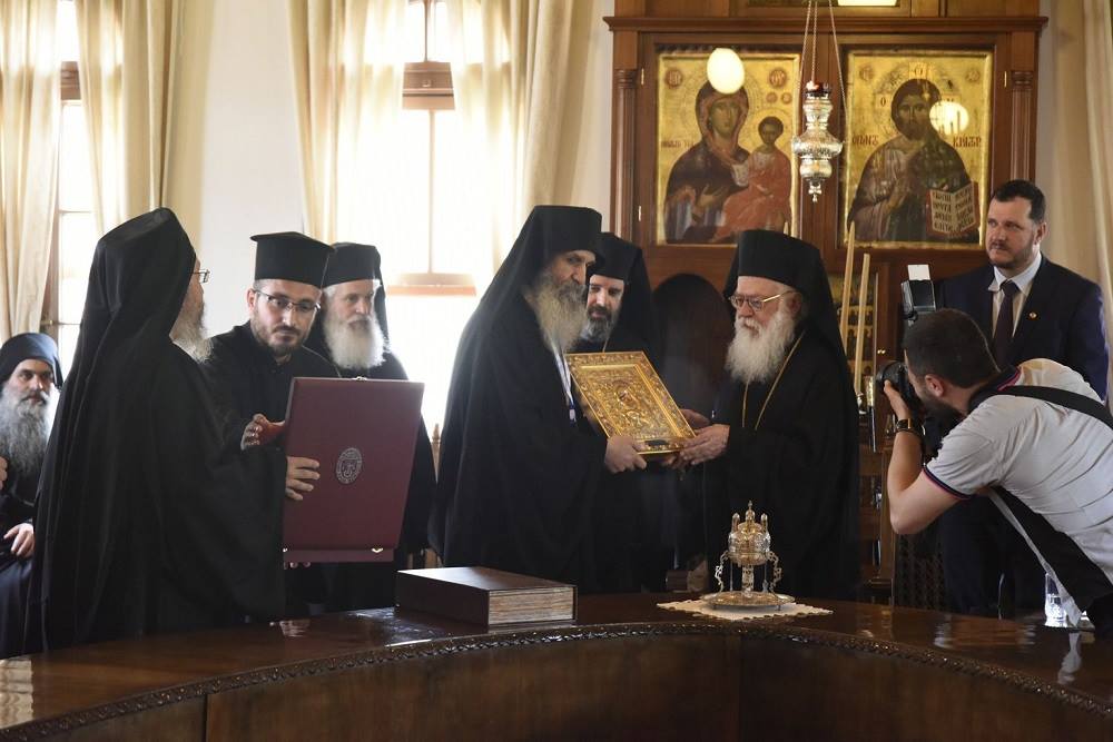 Të enjten, Kryepiskopi Anastas vizitoi Manastirin e Simonopetrës, vëllazëria e së cilës në vitet e para të përpjekjes për ringritjen e Kishës sonë ishte e pranishme në Shqipëri jo vetëm me lutje, por edhe me murgj që kryenin punë shpirtërore, veçanërisht në Akademinë tonë Theologjike, por edhe sektorë të tjerë.