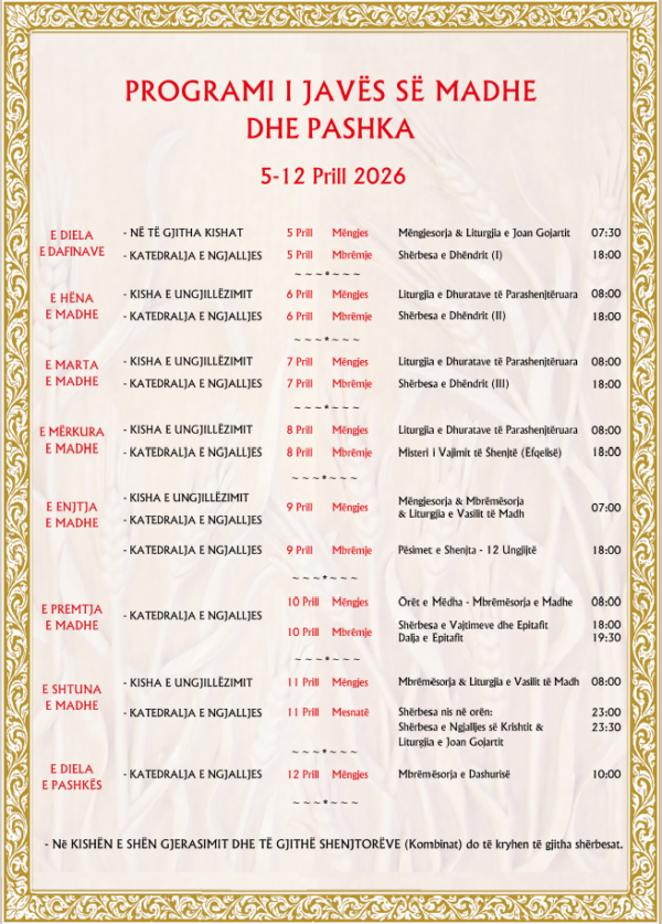 • View Larger Image Programi i Javës së Madhe dhe Pashka, 5-12 Prill 2026