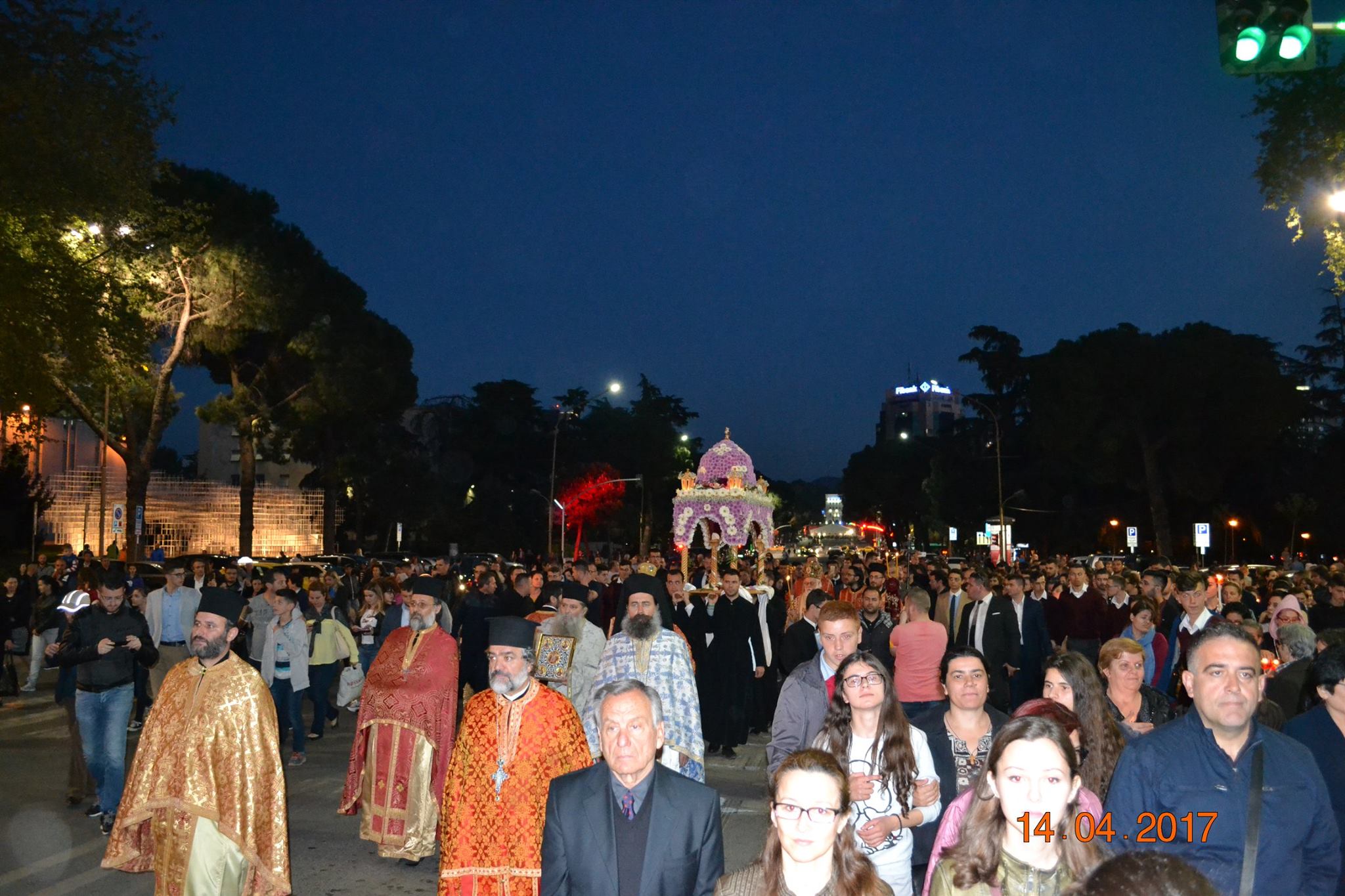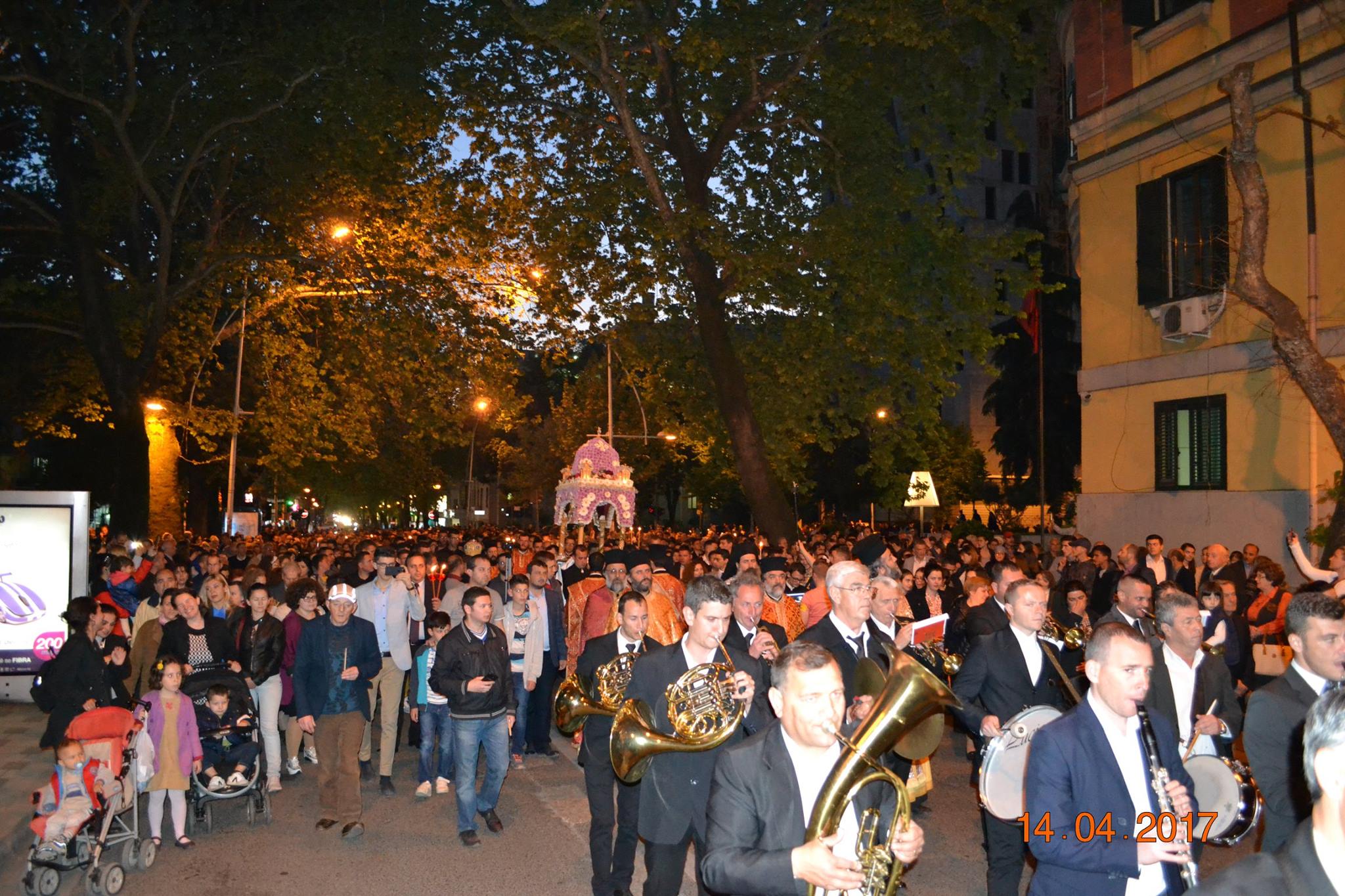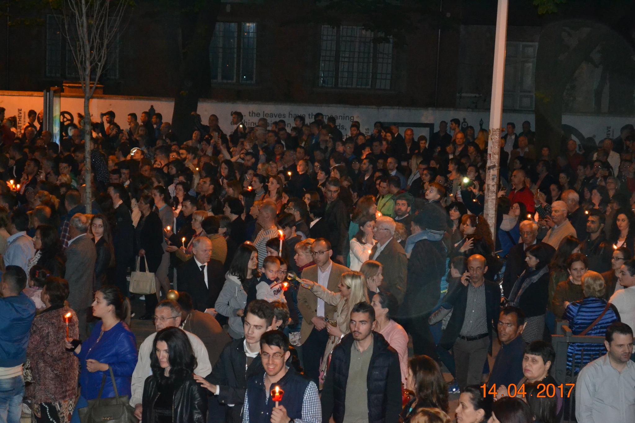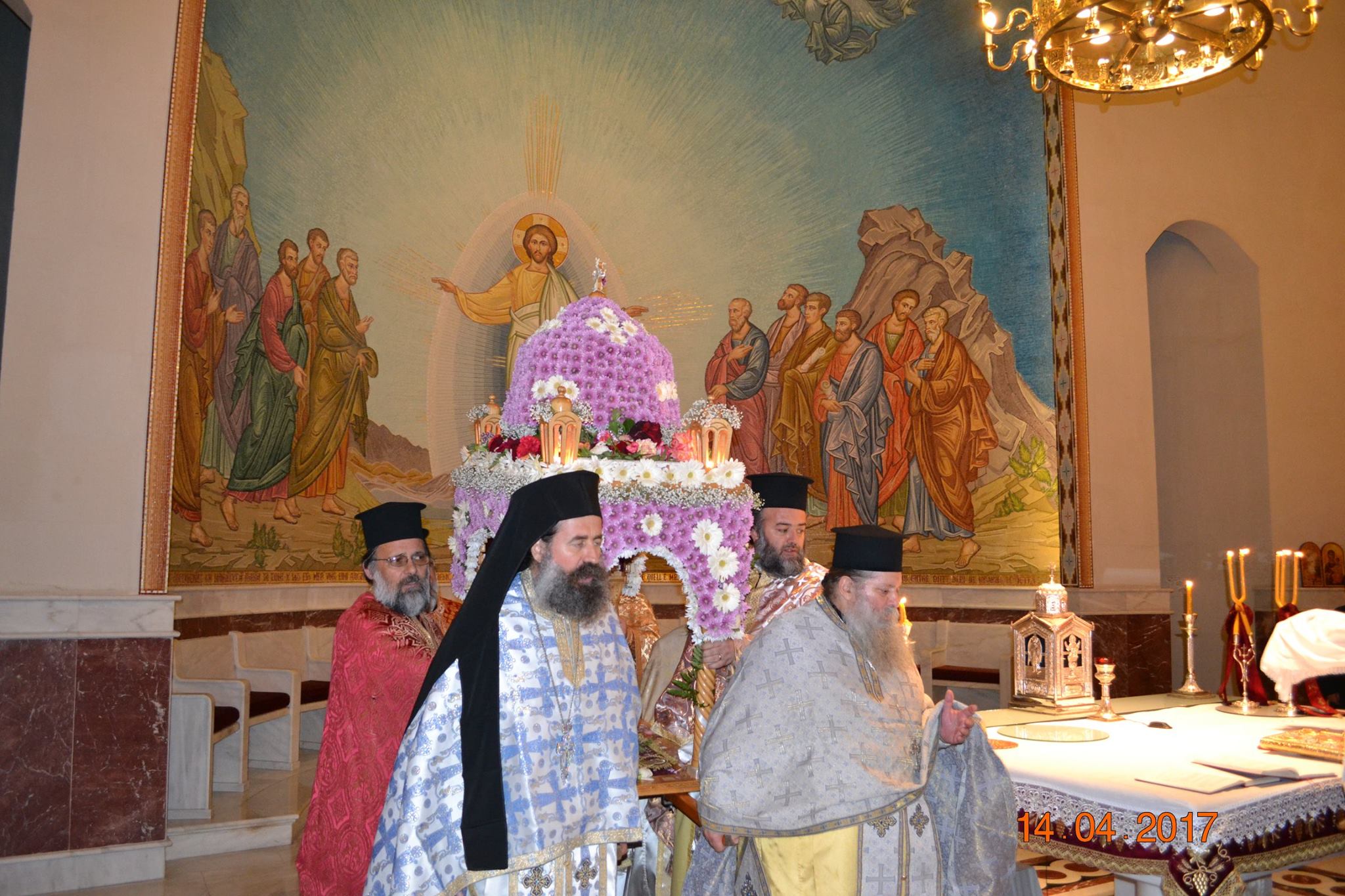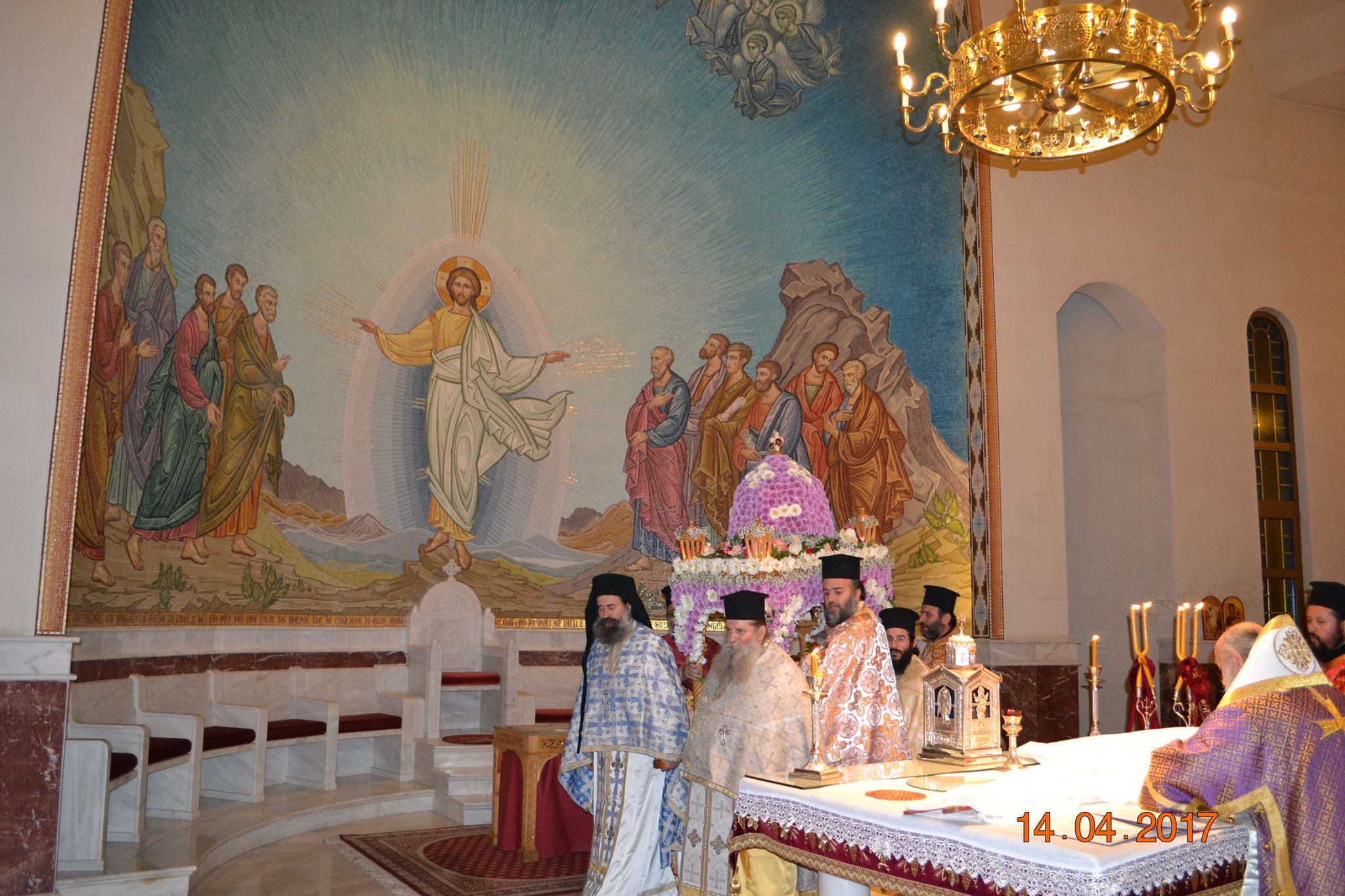 Το απόγευμα, χιλιάδες πιστοί συγκεντρώθηκαν στην Ακολουθία του Επιταφίου και τον ξεπροβόδισαν με μεγάλες τιμές στην περιφορά εκτός του ναού, στους δρόμους δίπλα στον Καθεδρικό και στη Λεωφόρο «Οι πεσόντες του Έθνους», όπου έκαναν μερικές στάσεις για να ψάλουν τα μοιρολόγια και να συμπληρώσουν την Ακολουθία. Τον Επιτάφιο συνόδευε και η ορχήστρα πνευστών της πρωτεύουσας. Της Ακολουθίας ηγήθηκε ο Αρχιεπίσκοπος Αναστάσιος, υποβοηθούμενος από τον Σεβασμιότατο Ναθαναήλ και κληρικούς της Ιεράς Αρχιεπισκοπής.