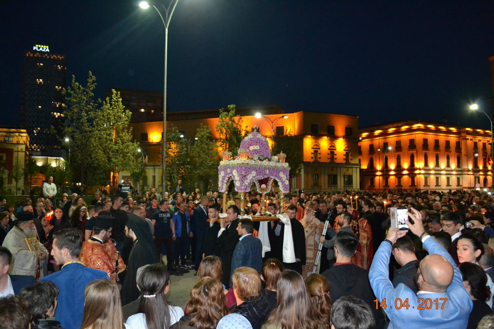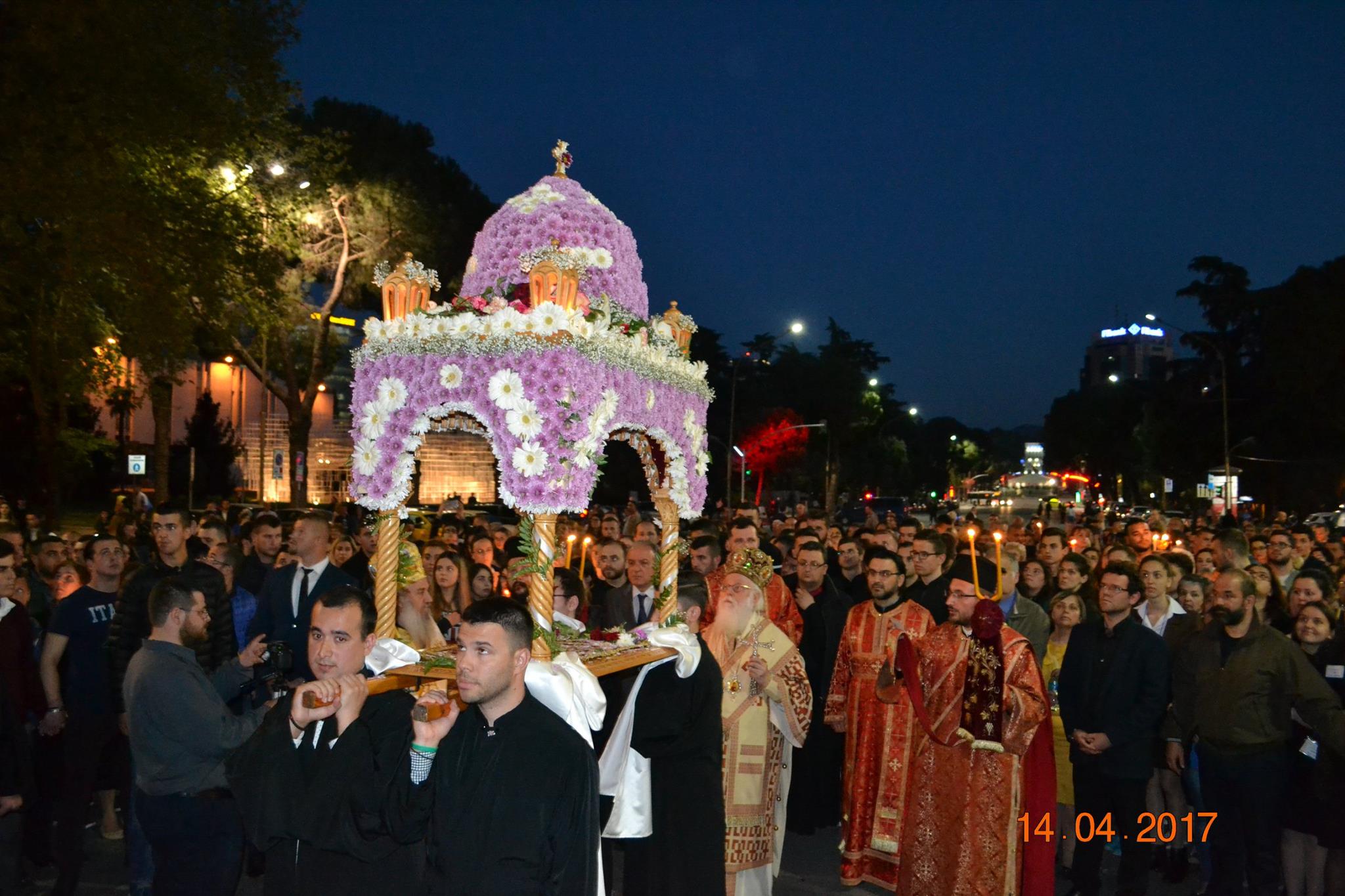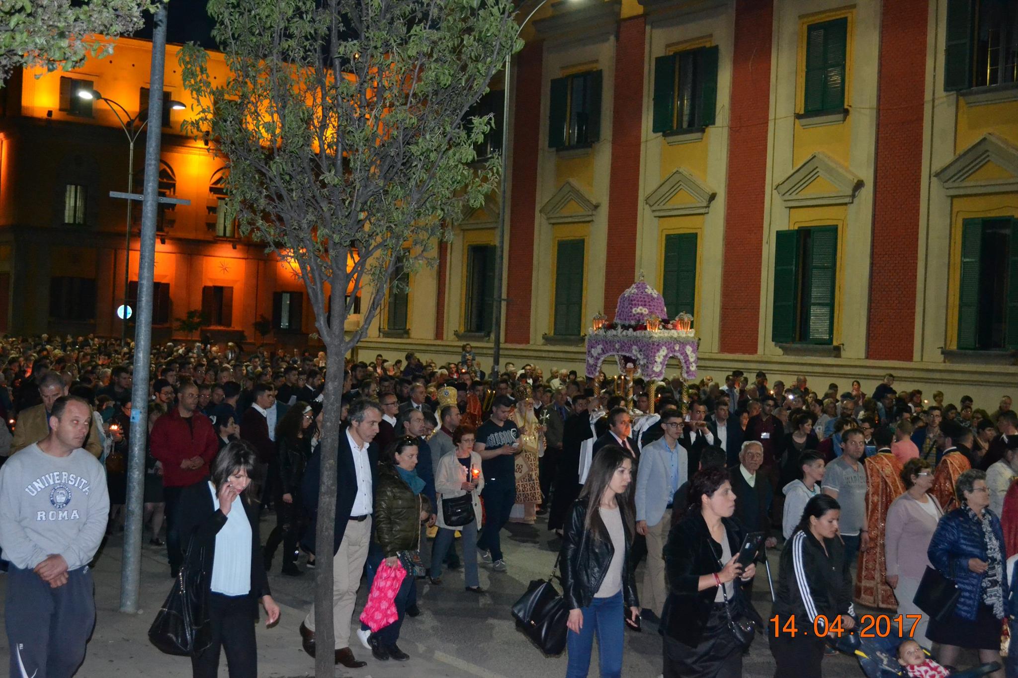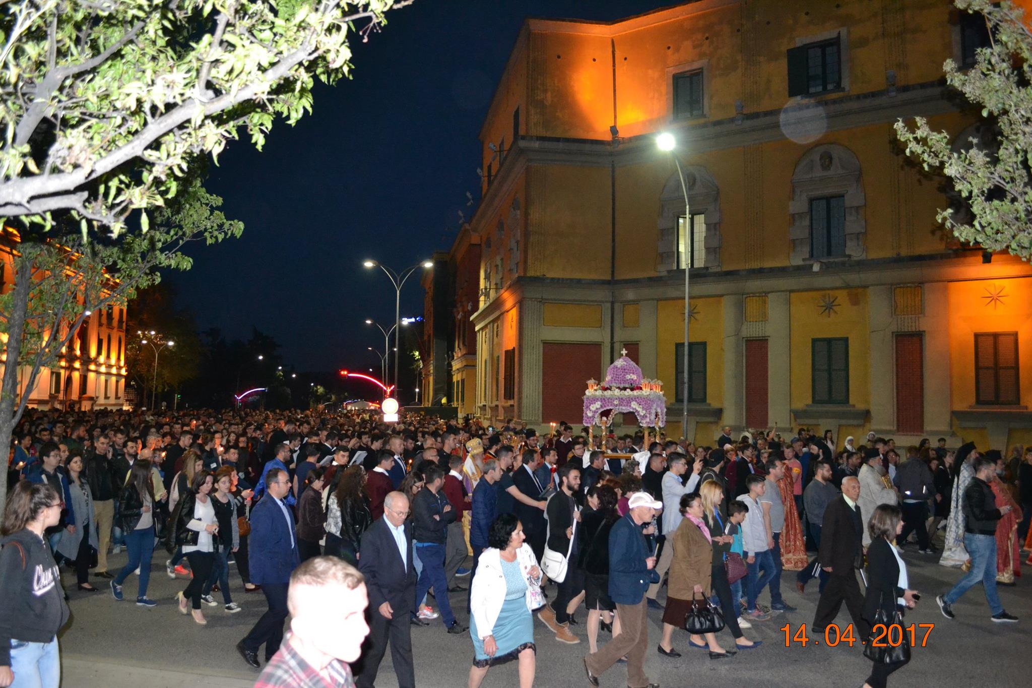 Το απόγευμα, χιλιάδες πιστοί συγκεντρώθηκαν στην Ακολουθία του Επιταφίου και τον ξεπροβόδισαν με μεγάλες τιμές στην περιφορά εκτός του ναού, στους δρόμους δίπλα στον Καθεδρικό και στη Λεωφόρο «Οι πεσόντες του Έθνους», όπου έκαναν μερικές στάσεις για να ψάλουν τα μοιρολόγια και να συμπληρώσουν την Ακολουθία. Τον Επιτάφιο συνόδευε και η ορχήστρα πνευστών της πρωτεύουσας. Της Ακολουθίας ηγήθηκε ο Αρχιεπίσκοπος Αναστάσιος, υποβοηθούμενος από τον Σεβασμιότατο Ναθαναήλ και κληρικούς της Ιεράς Αρχιεπισκοπής.