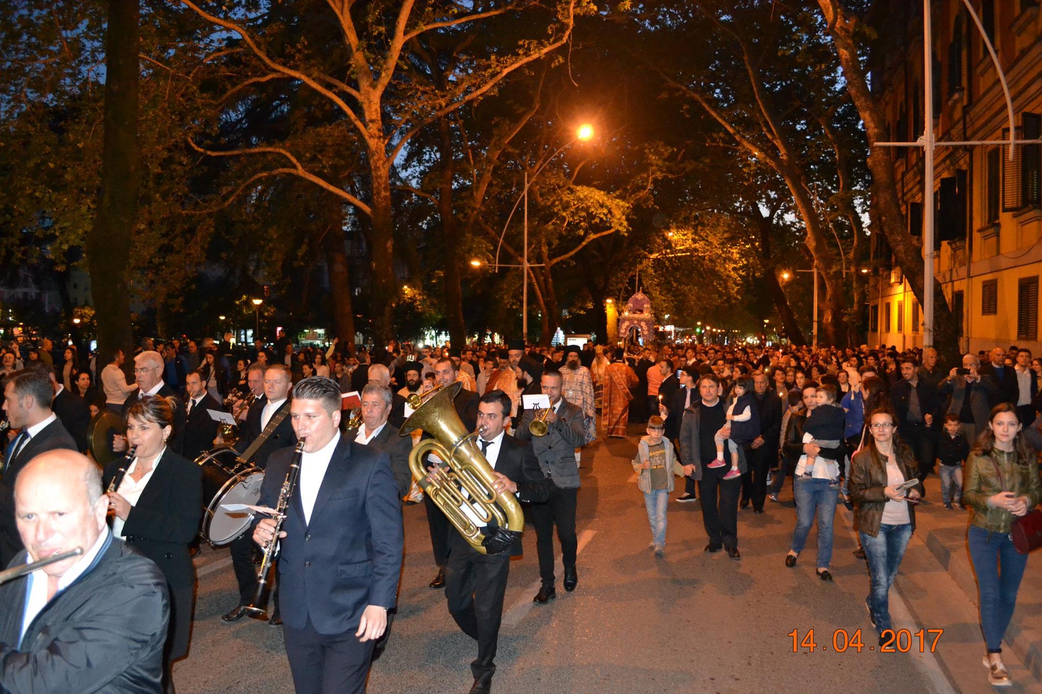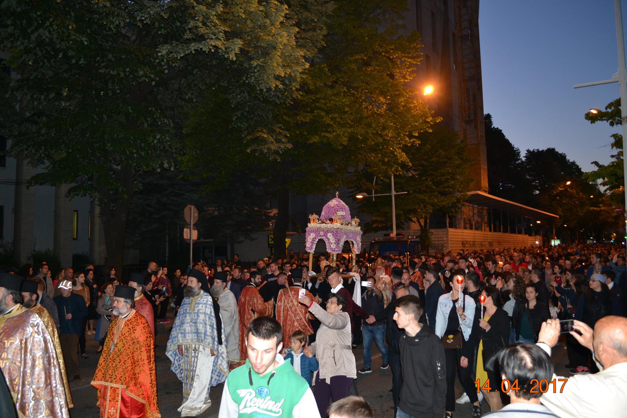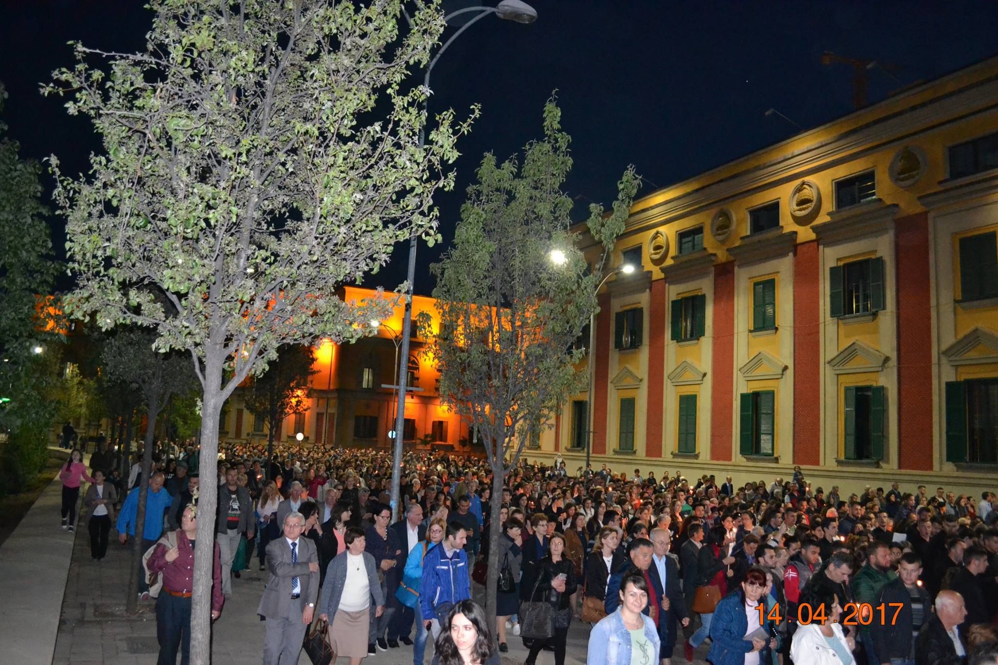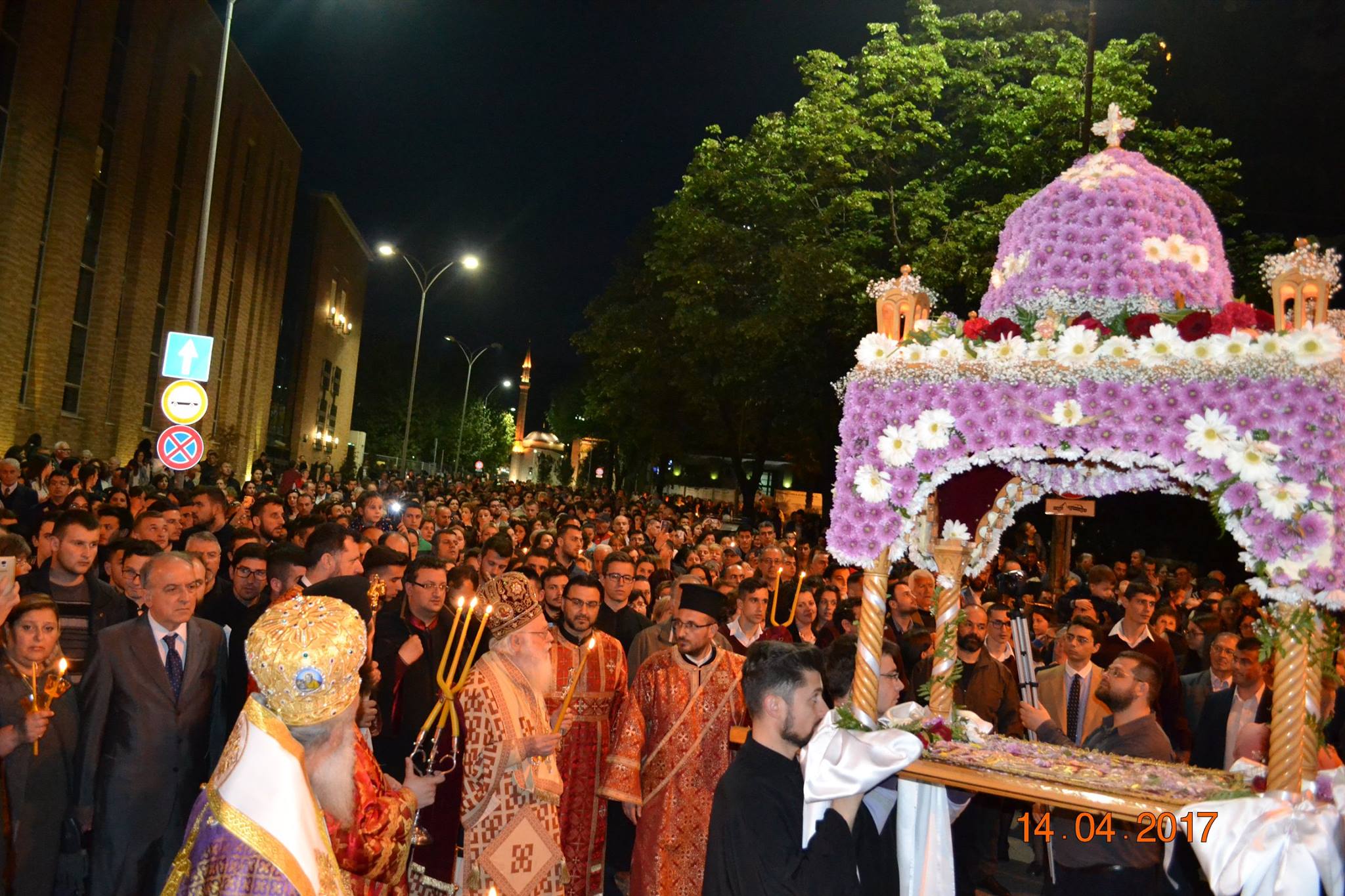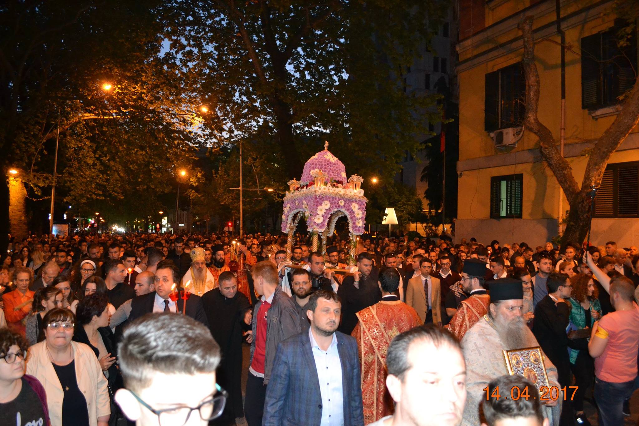 Το απόγευμα, χιλιάδες πιστοί συγκεντρώθηκαν στην Ακολουθία του Επιταφίου και τον ξεπροβόδισαν με μεγάλες τιμές στην περιφορά εκτός του ναού, στους δρόμους δίπλα στον Καθεδρικό και στη Λεωφόρο «Οι πεσόντες του Έθνους», όπου έκαναν μερικές στάσεις για να ψάλουν τα μοιρολόγια και να συμπληρώσουν την Ακολουθία. Τον Επιτάφιο συνόδευε και η ορχήστρα πνευστών της πρωτεύουσας. Της Ακολουθίας ηγήθηκε ο Αρχιεπίσκοπος Αναστάσιος, υποβοηθούμενος από τον Σεβασμιότατο Ναθαναήλ και κληρικούς της Ιεράς Αρχιεπισκοπής.