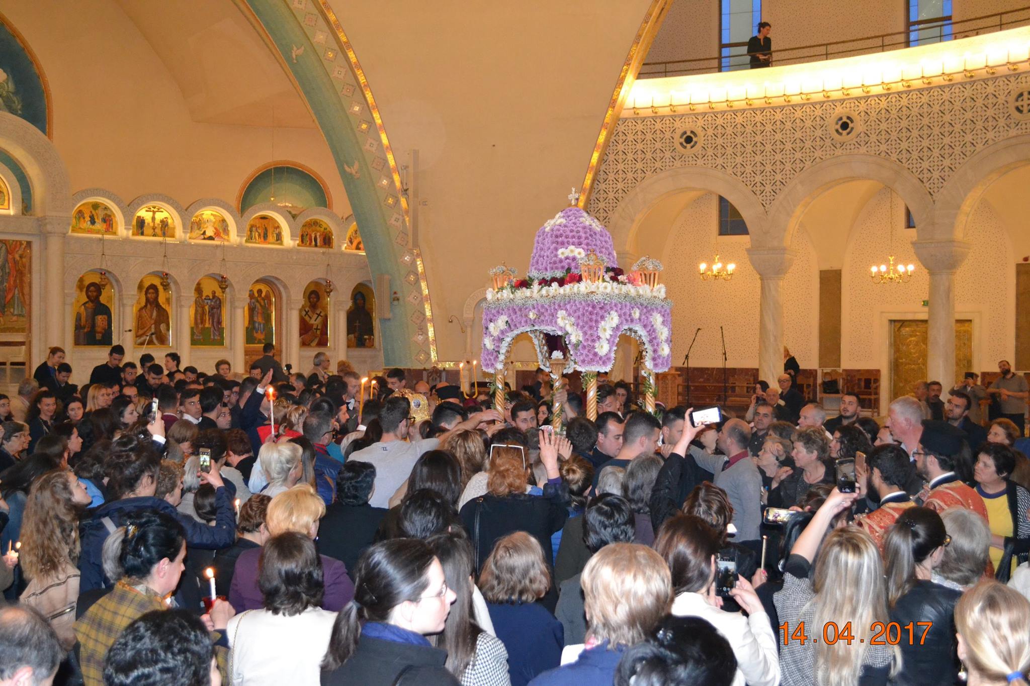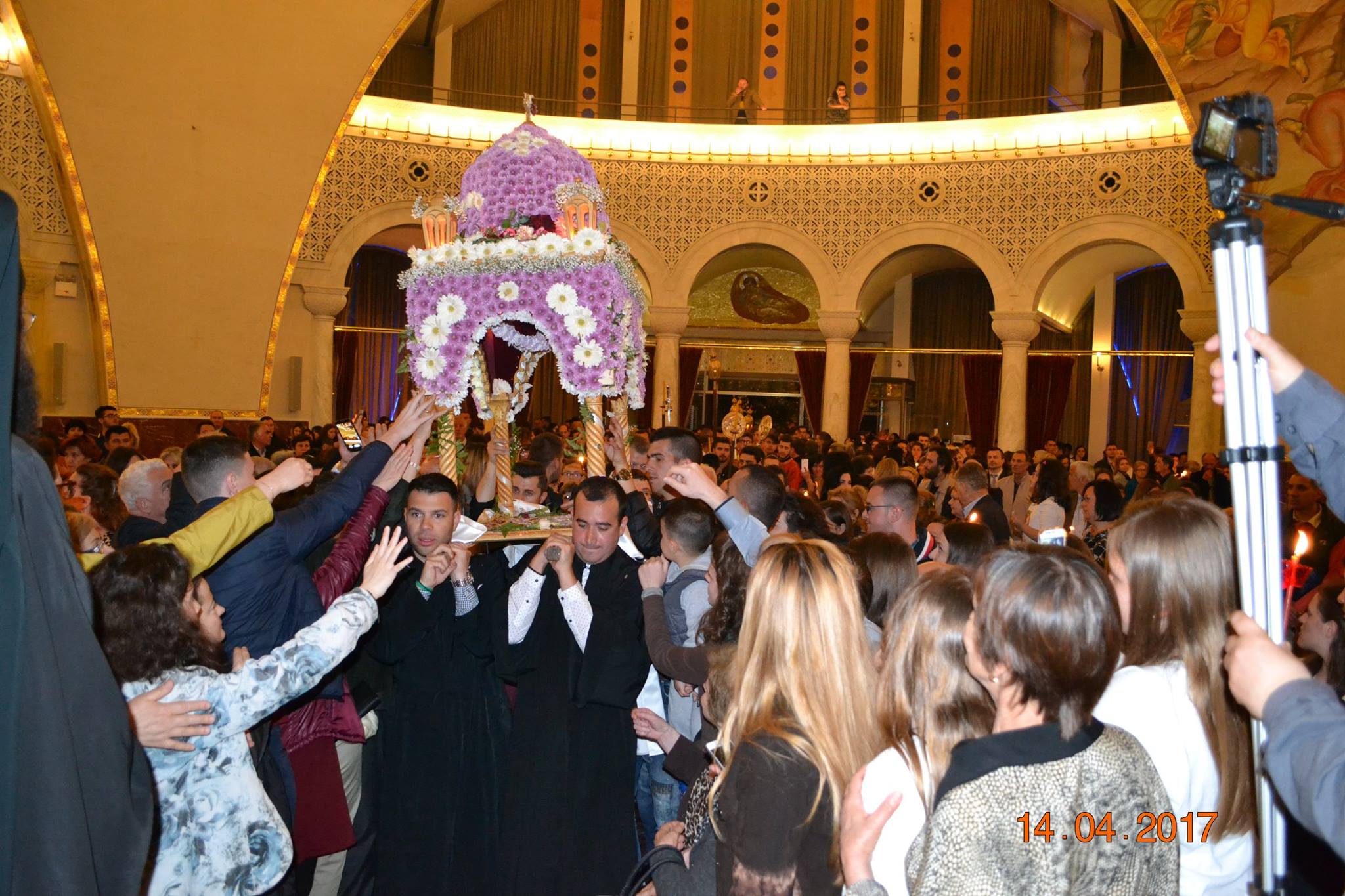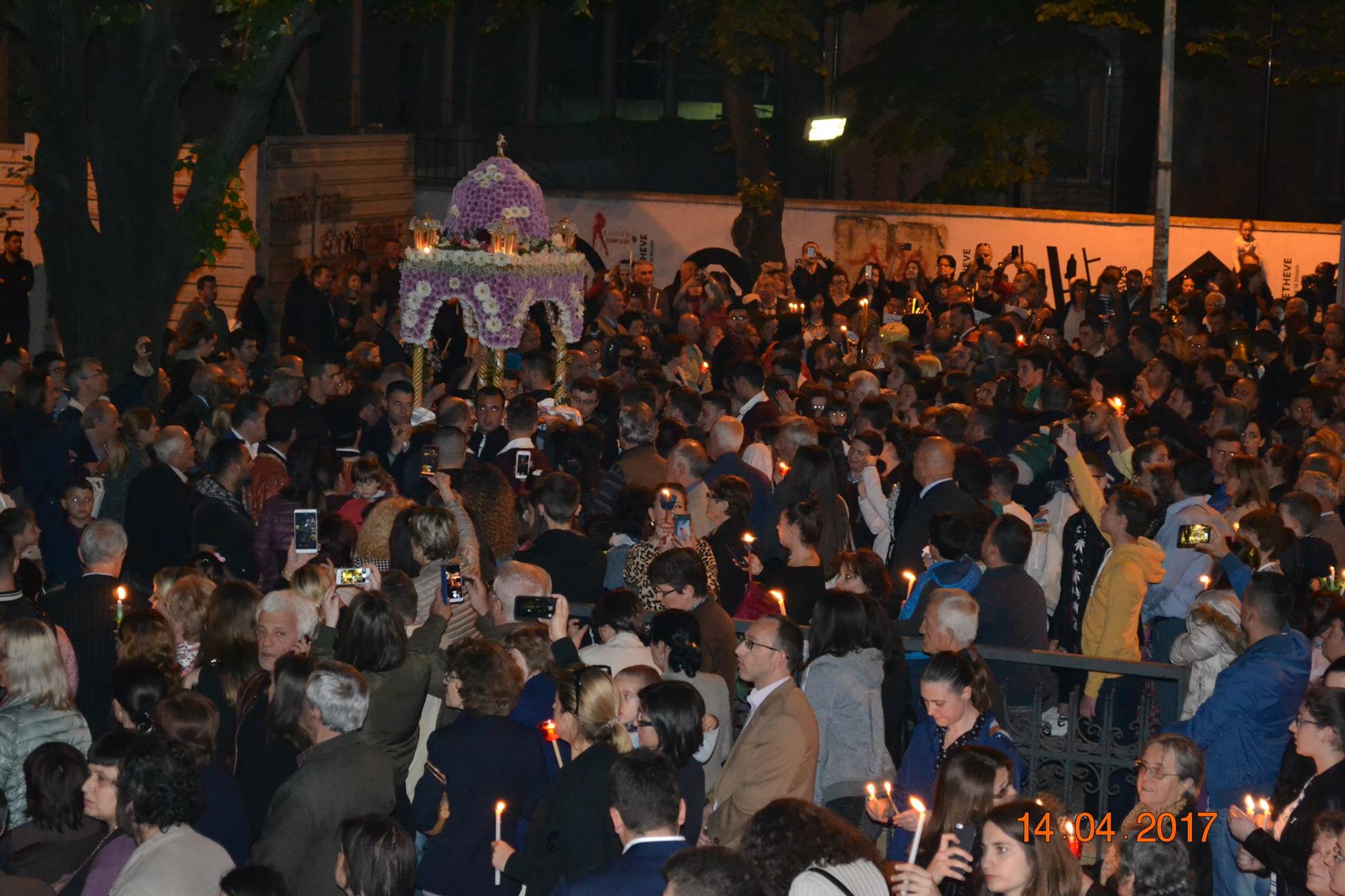 Η Μεγάλη Παρασκευή κατέχει εξέχουσα θέση στους εορτασμούς της περιόδου του Πάσχα. Πρόκειται για την ημέρα που μέσα από τον πόνο μοιρολογούμε τη Σταύρωση, έχοντας παράλληλα τη σιγουριά ότι σύντομα θα ζήσουμε την Ανάσταση του Κυρίου μας του Χριστού και τη νίκη του επιθανάτια νίκη Του. Καθ’ όλη τη διάρκεια της ημέρας οι πιστοί προσέγγιζαν με ιδιαίτερες τιμές τον επιτάφιο που είχε στηθεί στη μέση του Καθεδρικού « Η Ανάσταση του Χριστού», τιμώντας Τον με βαθιά αυταπάρνηση, φέροντας τα ωραιότερα άνθη για τη διακόσμηση του τάφου, ο οποίος δεν θα μπορέσει να τον κρατήσει μακρά μέσα του.