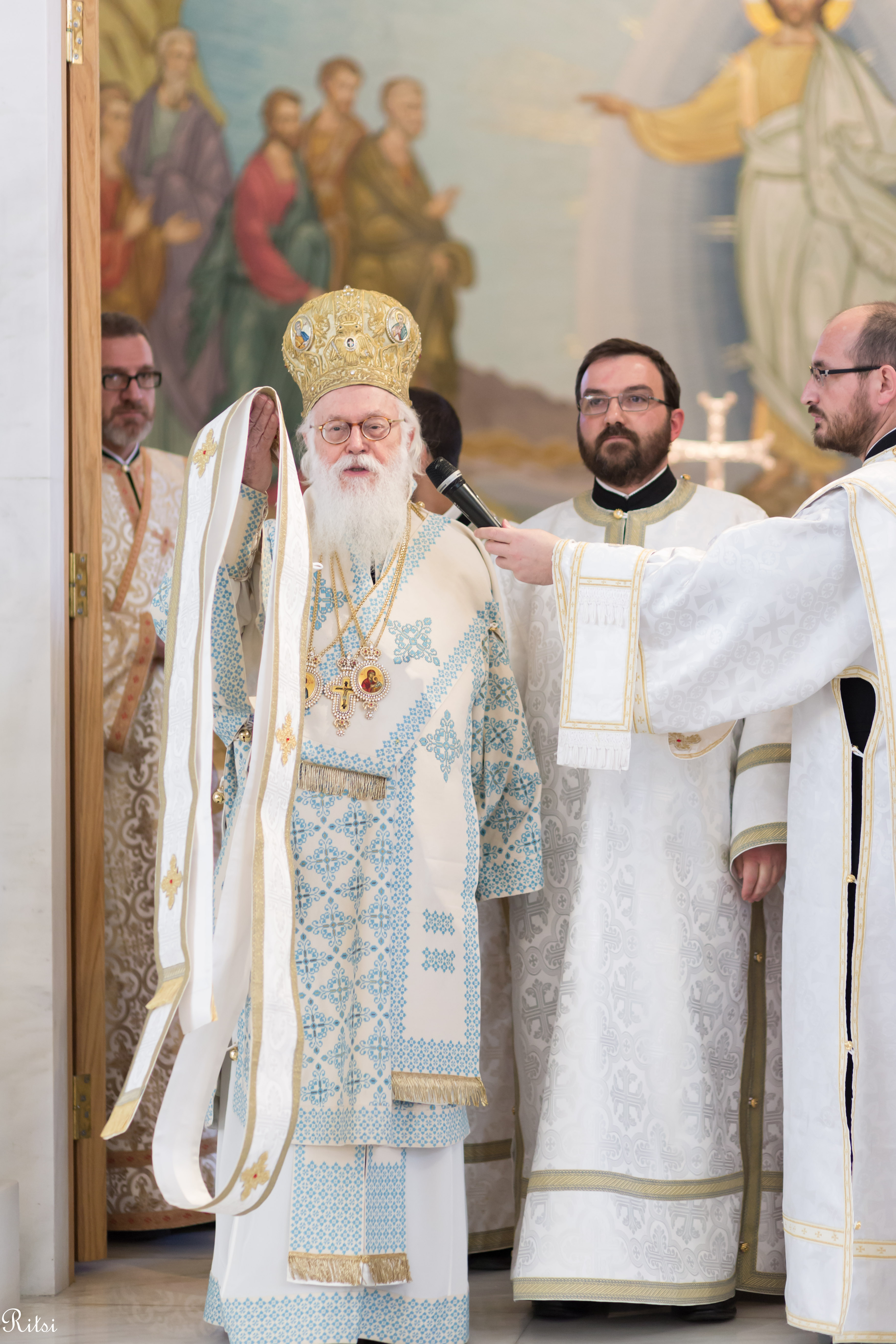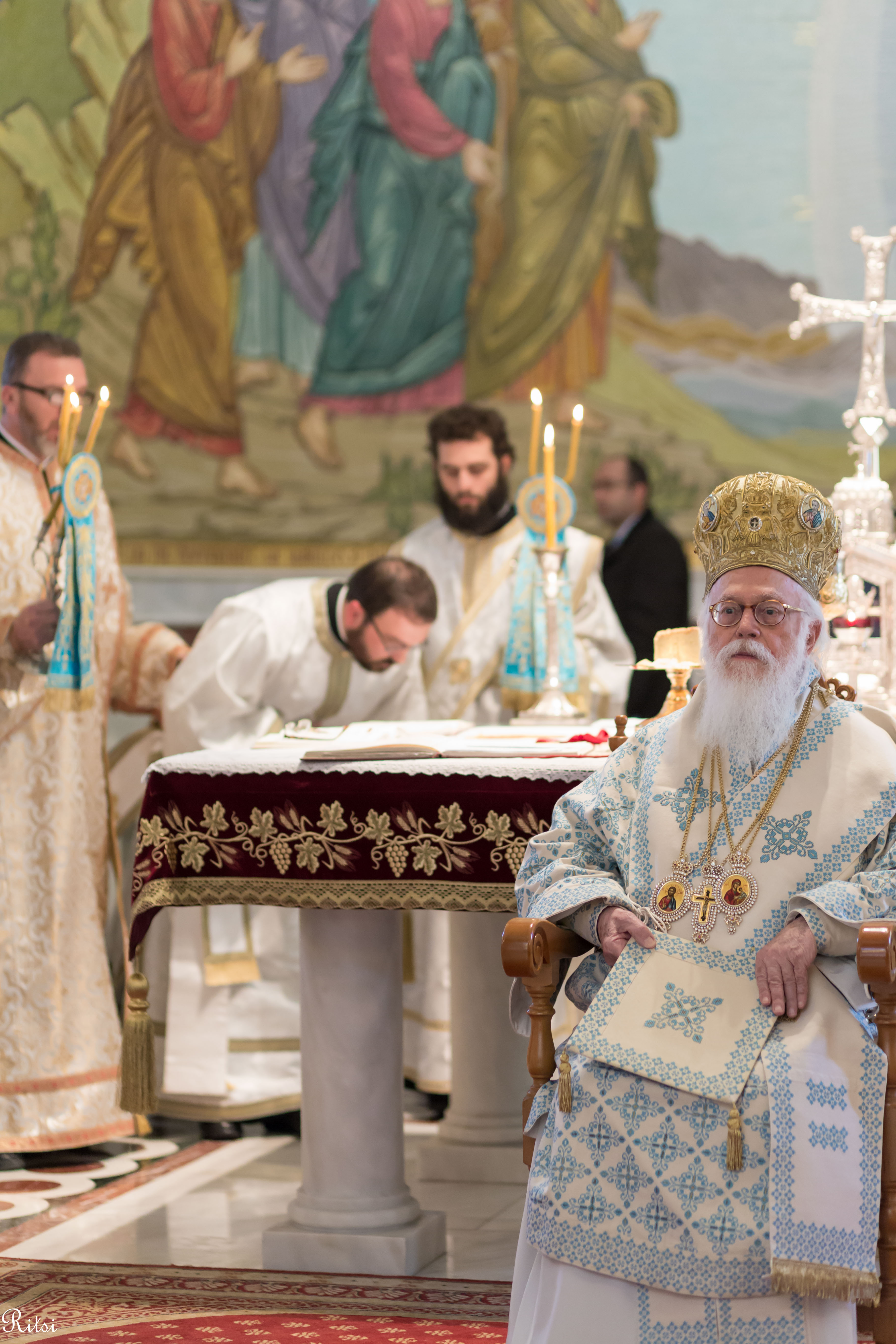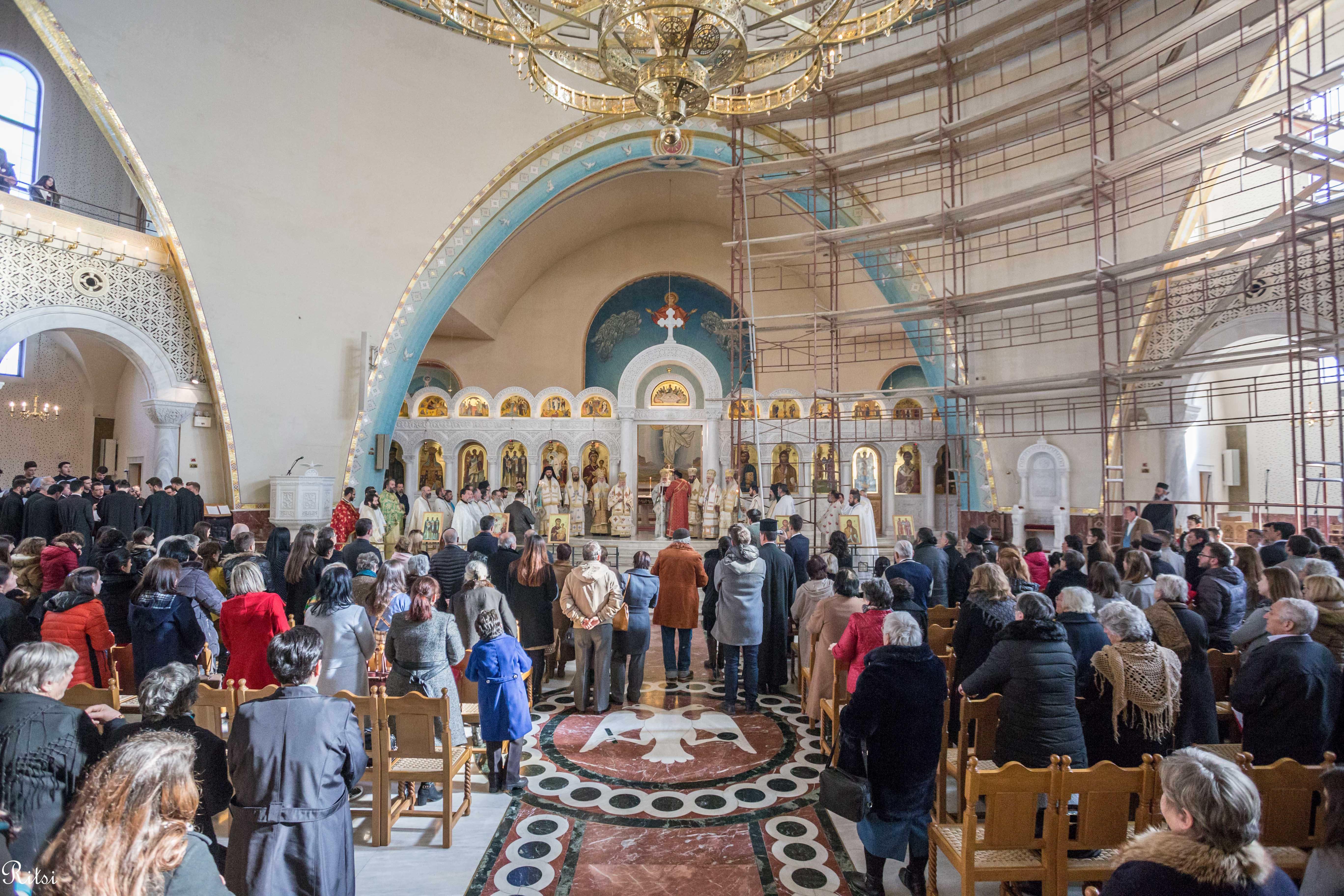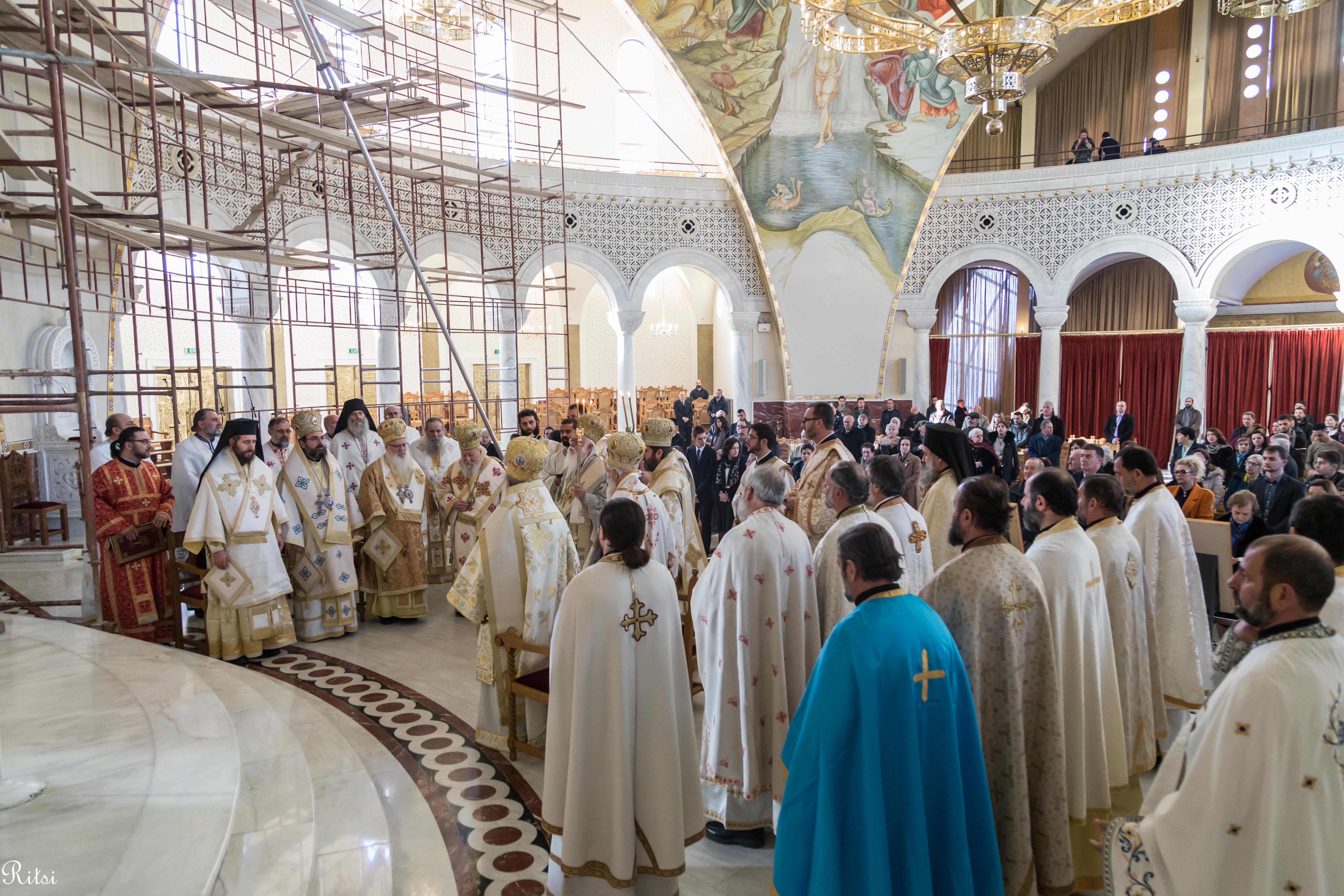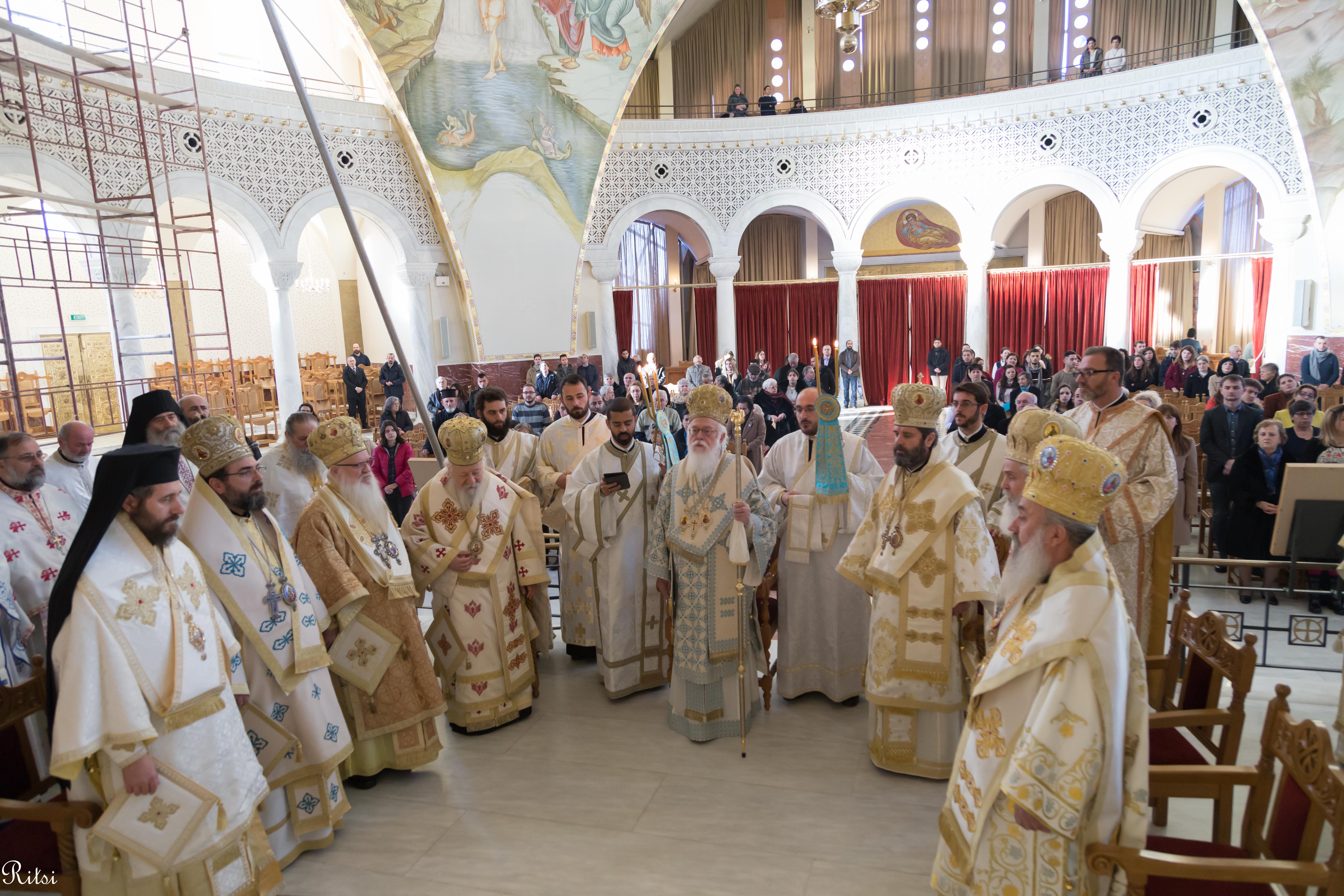 Divine Liturgy was celebrated on this day at the Resurrection of Christ Cathedral, in Tirana, where the Holy Synod of our Church and many clergymen from all areas concelebrated. The church was full of believers coming from all the dioceses, but it was particularly remarkable the large number of Orthodox youth present at the Liturgy. This was the first time that Archbishop Anastasios celebrated as an Albanian citizen. He was granted the Albanian citizenship by the President of the country, Mr. Ilir Meta a month earlier.