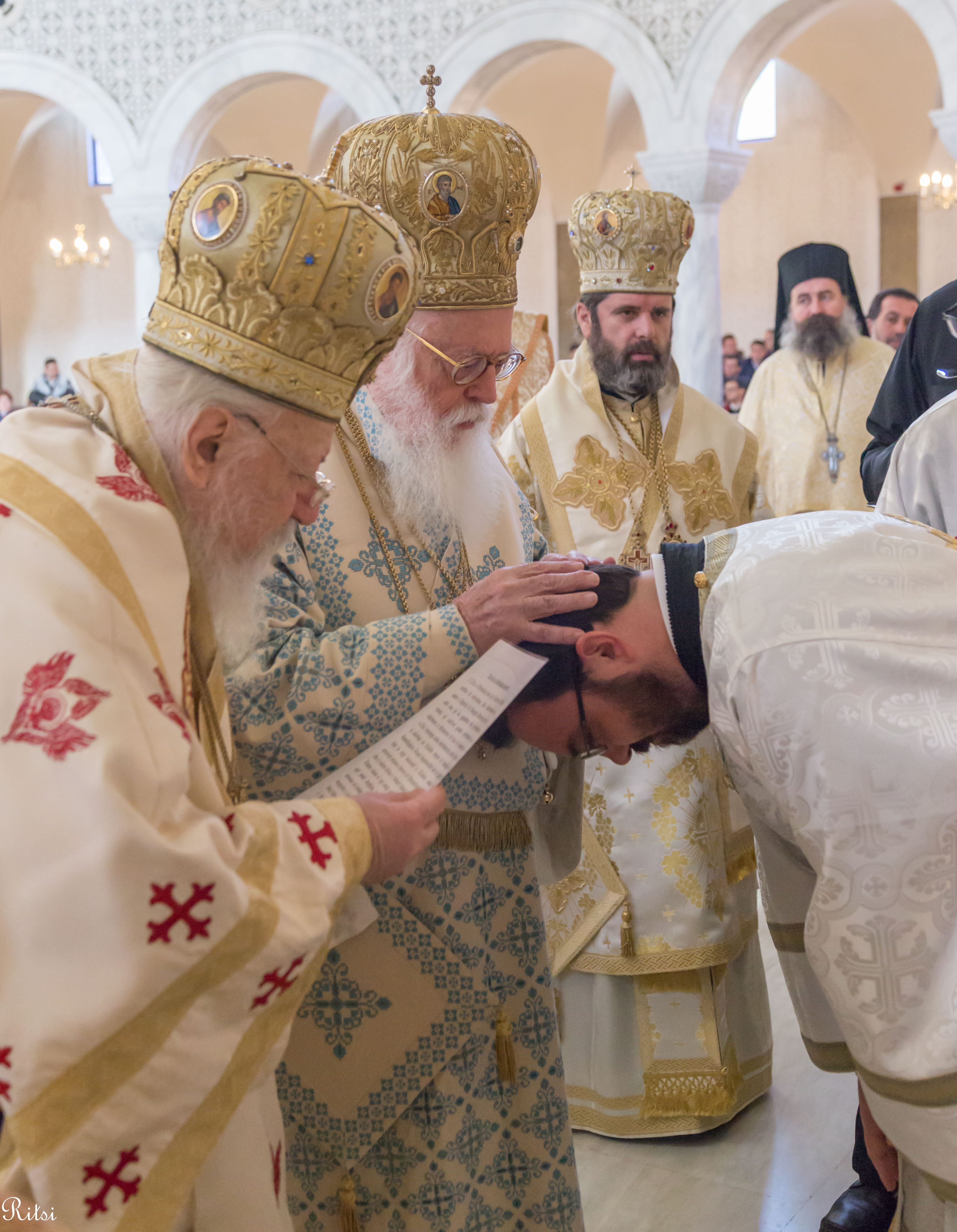 In the end, on behalf of the Holy Synod and the Orthodox believers who were present at the event, His Grace Joan, the Metropolitan of Korca gave the respective wishes to the Archbishop.