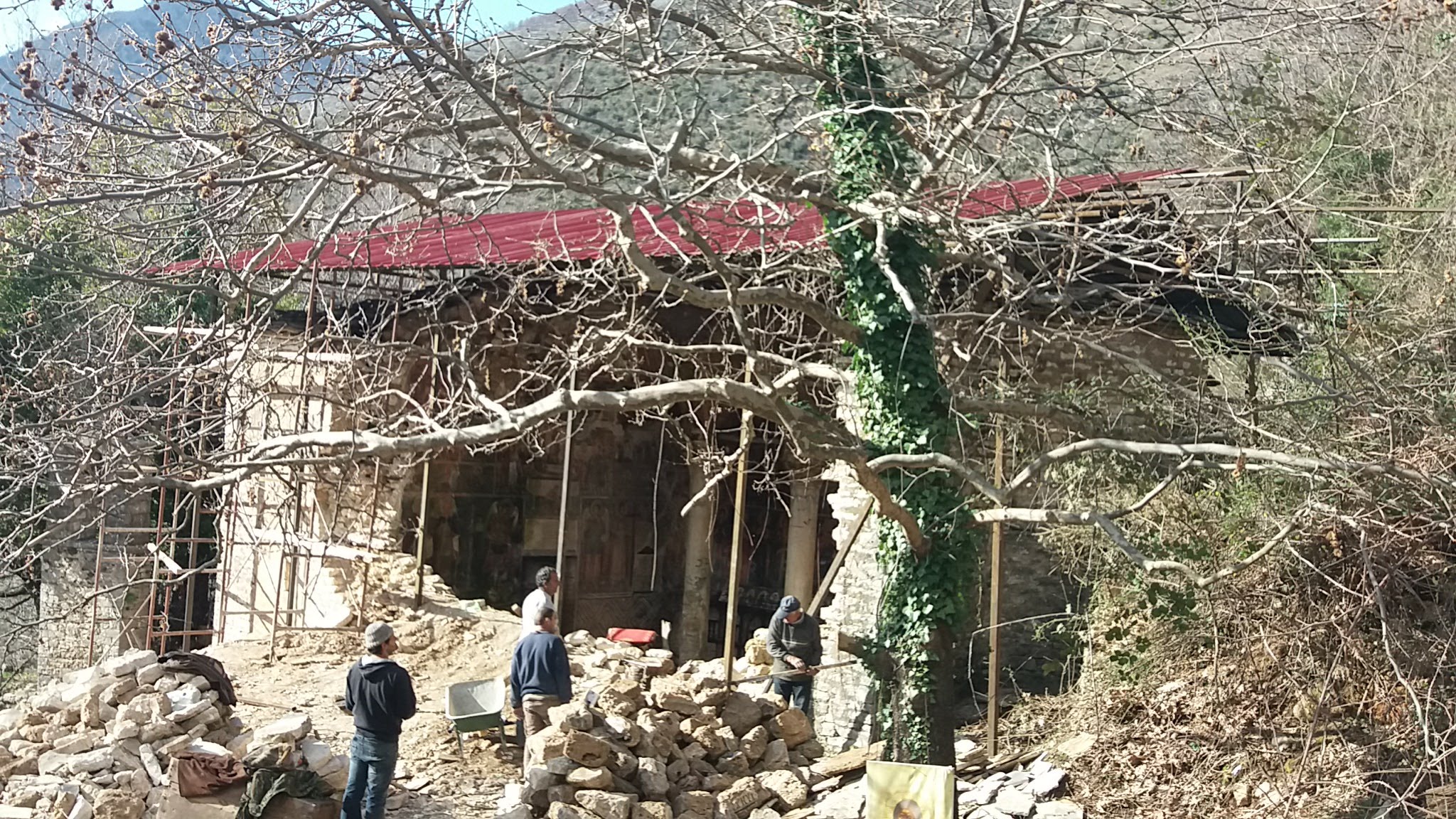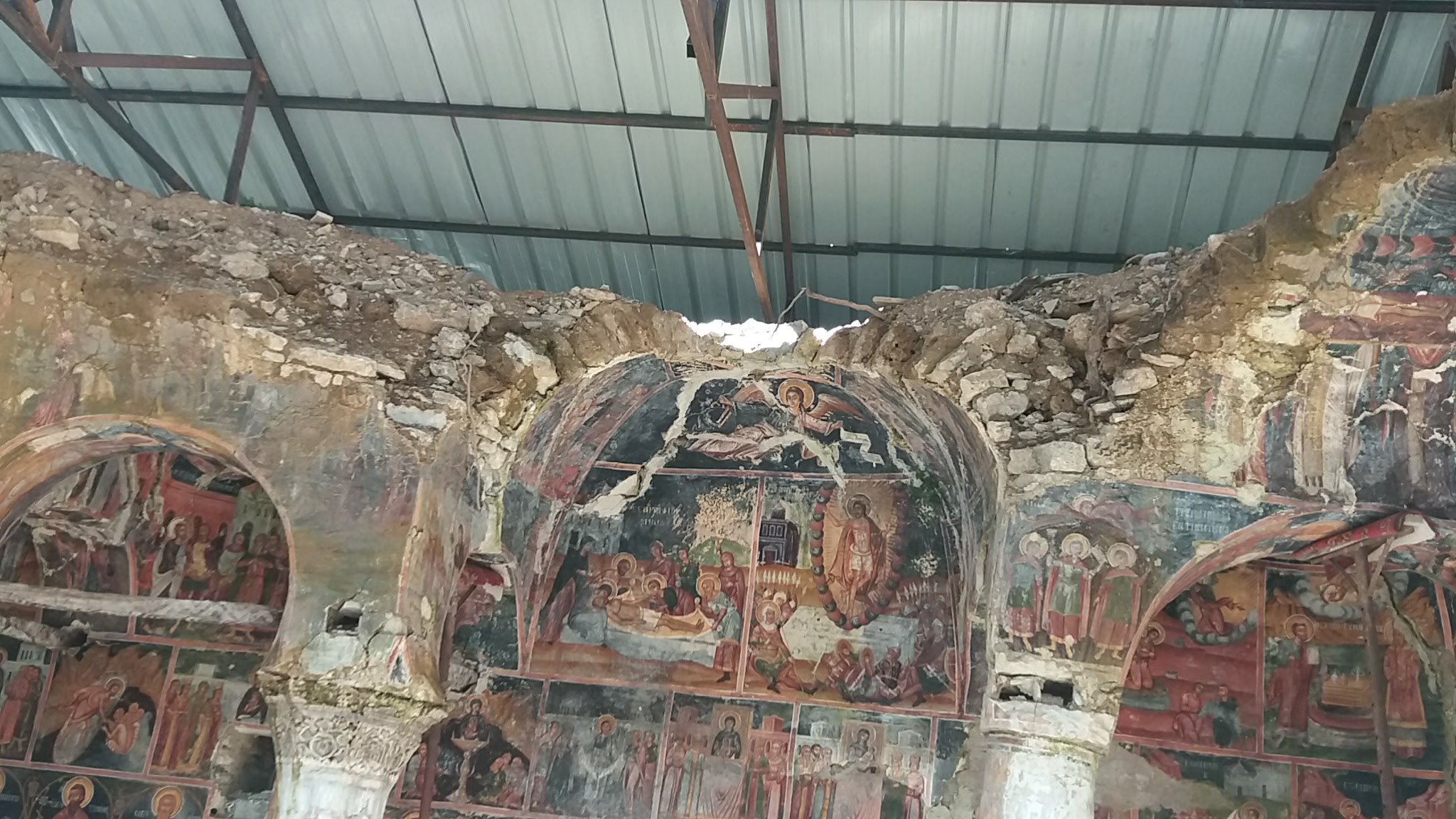 More specifically the undertaken work involved: the removal of all the remains that had fallen inside the church and the arrangement of the material, leaving aside the pieces with contents of the frescoes. The surrounding area was cleansed from the vegetation and the church path was paved. The whole drainage system was rehabilitated so that the water flows did not affect the foundation of the church. The remains of the iconostasis were piled up. Also, supporting structures were added in the still-standing arcades on the north and east side. Demolished stone roof tiles and fractures from the structure, which posed a risk to the believers and visitors, were carefully removed.