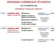 Liturgjitë dhe Shërbesat e Krishtlindjes në Tiranë Liturgjitë Hyjnore dhe Shërbesat për Vigjiljen dhe të kremten e Krishtlindjes do të kryhen duke zbatuar të gjitha masat e distancimit, për t’u mbrojtur nga pandemia e Covid-19. Të gjithë besimtarët duhet të mbajnë maskat gjatë gjithë kohëzgjatjes së tyre dhe distancën e kërkuar. Për të ndihmuar në shmangien e çdo grumbullimi do të meshohet në të gjitha