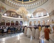 Momente nga shërbesat kremtuese të Krishtlindjes në Katedralen “Ngjallja e Krishtit”, Tiranë, 25.12.2019.Shërbesat u transmetuan drejtpërdrejtë në nga Radio Ngjallja dhe TVSH, por edhe nga disa televizione private.Në orën 12.30 Kryepiskopi Anastas priti urimet e rastit në sallën e Sinodit të Shenjtë.
